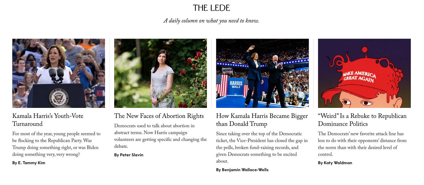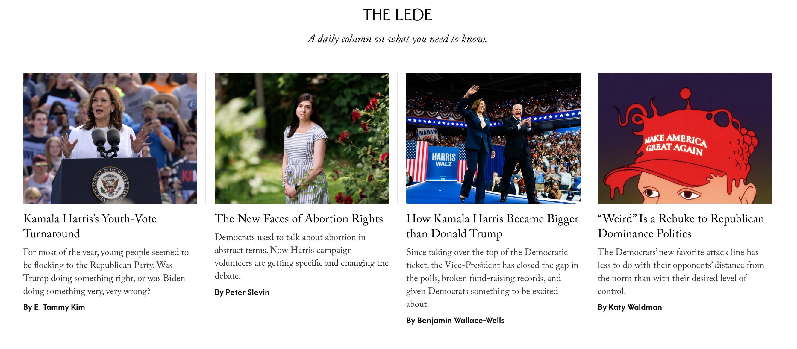 The New Yorker, my employer, is offering more of this kind of aggregation as well. Its homepage is made up of curated packages of stories that present an authoritative glimpse of the dayâs storylines: âwhat you need to know.âÂ