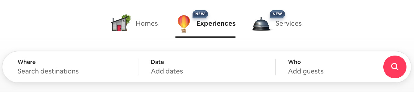 Experiences have already failed for Airbnb once. It turns out itâs harder to productize and scale human-to-human interaction than renting out empty houses. Whatâs more interesting than the pivot is the aesthetic. Airbnb has always been a design-forward company, its brand as prominent as its tech. After the relaunch, its icons are softly rounded pictographs, like custom emoji. The icon for the services tab on the homepage is a bellhop bell that animates when you click on it; the Experiences icon is a cute hot-air balloon. There are icons of tiny landscapes, tiny cameras, tiny massage tables.
