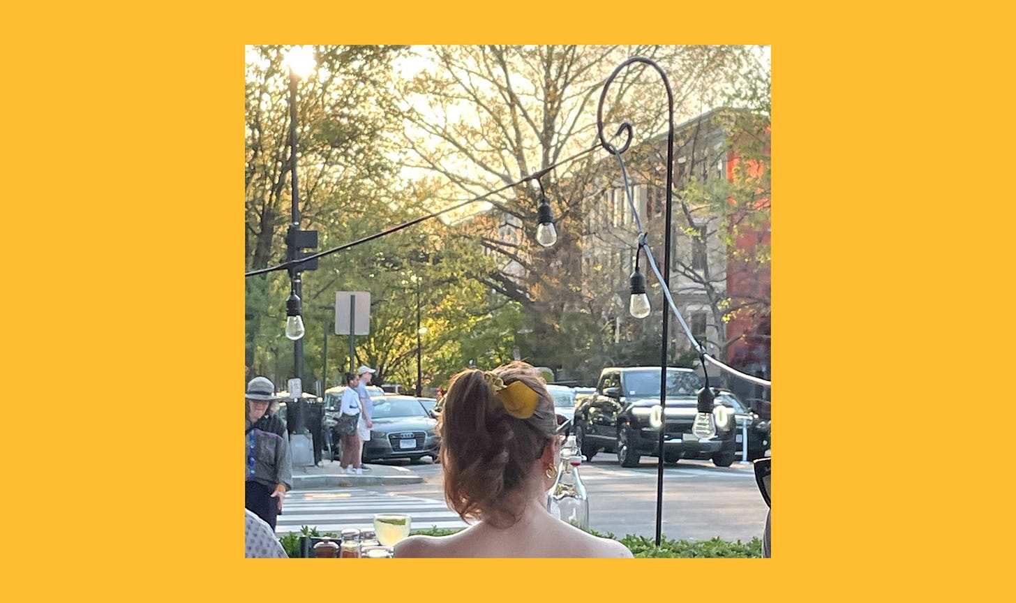 Kyle Chayka: The weather in DC has been absolutely beautiful the last few days. The disappointment of this city is that there are two or three months a year, in spring and fall, when it feels like the most lush, perfect, accessible place with streets of flowering trees and a southern air of unhurried complacency. But then there’s the actual summer, when the swamp is stifling and the city reveals itself to not have been remotely designed for its current climate. (That would require the architectural vernacular of New Orleans.) Yesterday afternoon, Jess and I and some friends (including OT contributor Eliza Brooke) spent a long afternoon sitting at the streetcorner patio of Etto (we could say terrasse), a lovely Italian place, chatting, drinking pale beer, eating braised artichokes and fava beans with fresh ricotta, and watching the sun set through the leaves. “I feel like I’m an ex-pat in Spain,” one of our group said. She was right, and it should be like that more often.