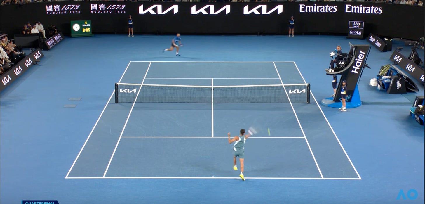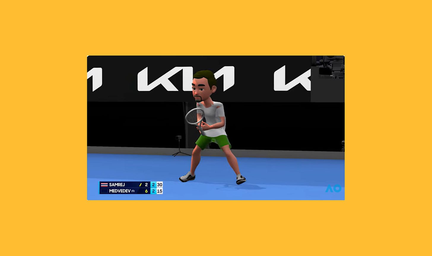 Yet the other day, jet-lagged and too awake at 4:30 AM, I excitedly realized that the Australian Open, the professional tennis calendar’s first big tournament of the year, had likely started and it was prime time to catch some early round matches. Having cancelled my fairly expensive Youtube TV subscription I went to Youtube itself and was happily surprised to see that the tournament’s sponsored page was streaming a match live. When I clicked on the feed I saw the very familiar, very aqua-blue palette of the Melbourne hard-courts, the usual melange of ads for Chinese whiskey and air-conditioners, the chair umpire and the crowd, and even some quiet color commentary. However, everything suddenly snapped into unreality. In place of the players were slightly wiggly, very unathletic looking cartoon avatars where I expected to see the whips and springs and muscular ripple of world-class athletes fighting for a second round spot. The cartoons were thwacking what looked like a giant cartoon softball back and forth. The ad-bedecked background then followed, looking less cartoonish but clearly meant to replicate the unreality of the Wii-ish, AI characters now playing the match.